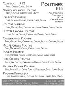 Check out our menu and call ahead for takeout or lounge on one of our two patios! We’re open Wednesday to Saturday, 4pm to 9pm.